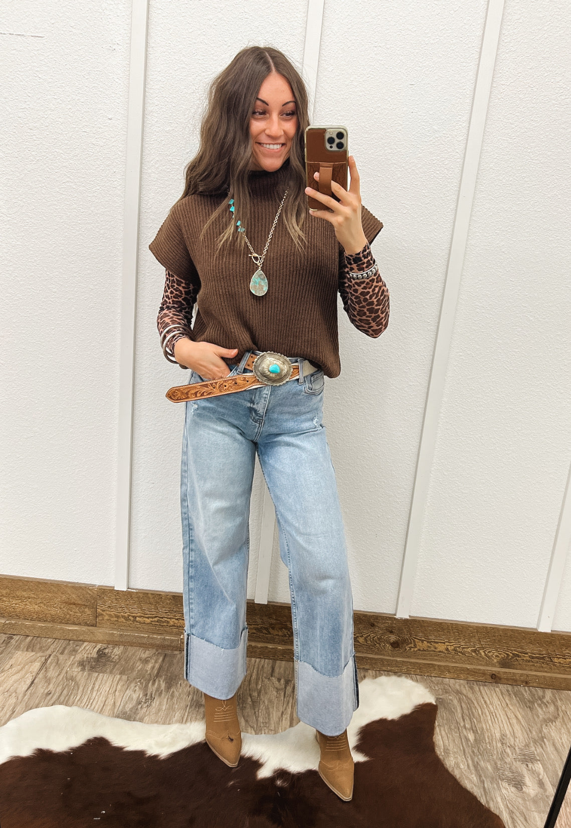 Western Knit Sweater Vest (Brown)