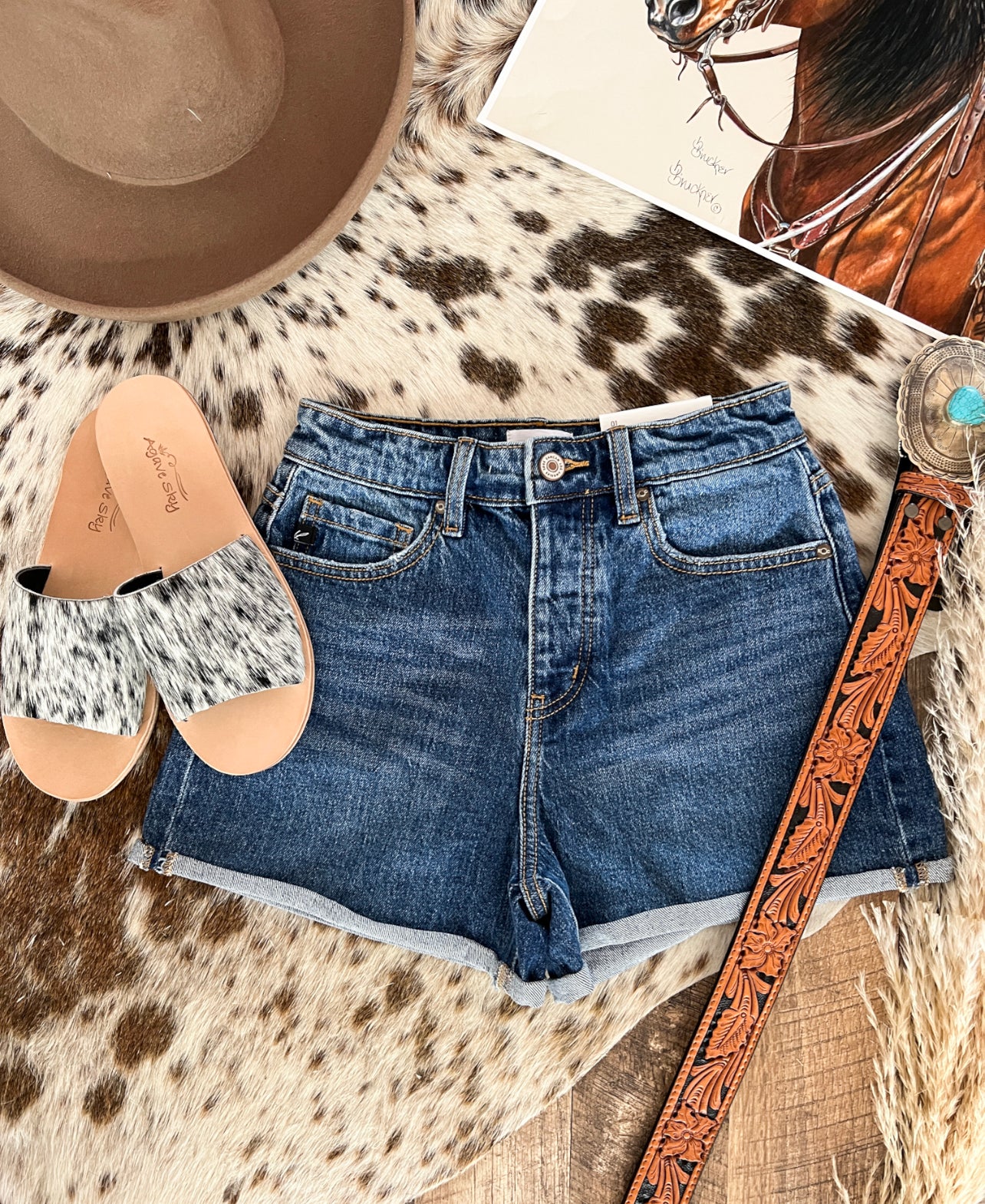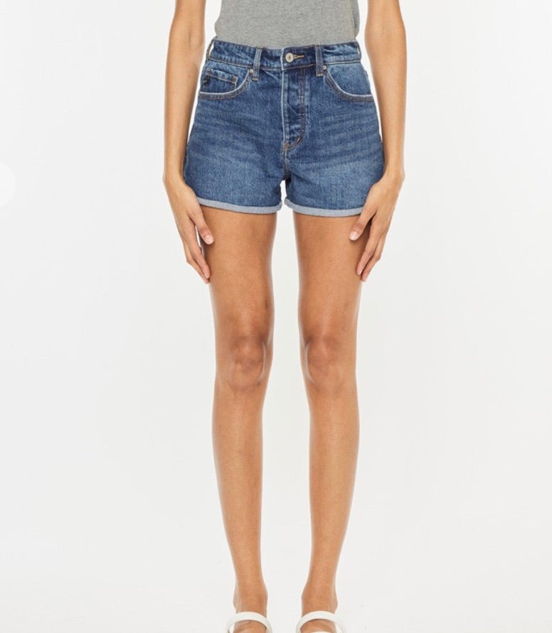 ULTRA HIGH RISE SHORT -DARK STONE WASH -COMFORT STRETCH -DOUBLE FOLD HEM -5 POCKET STYLE -HIDDEN BUTTON FLY