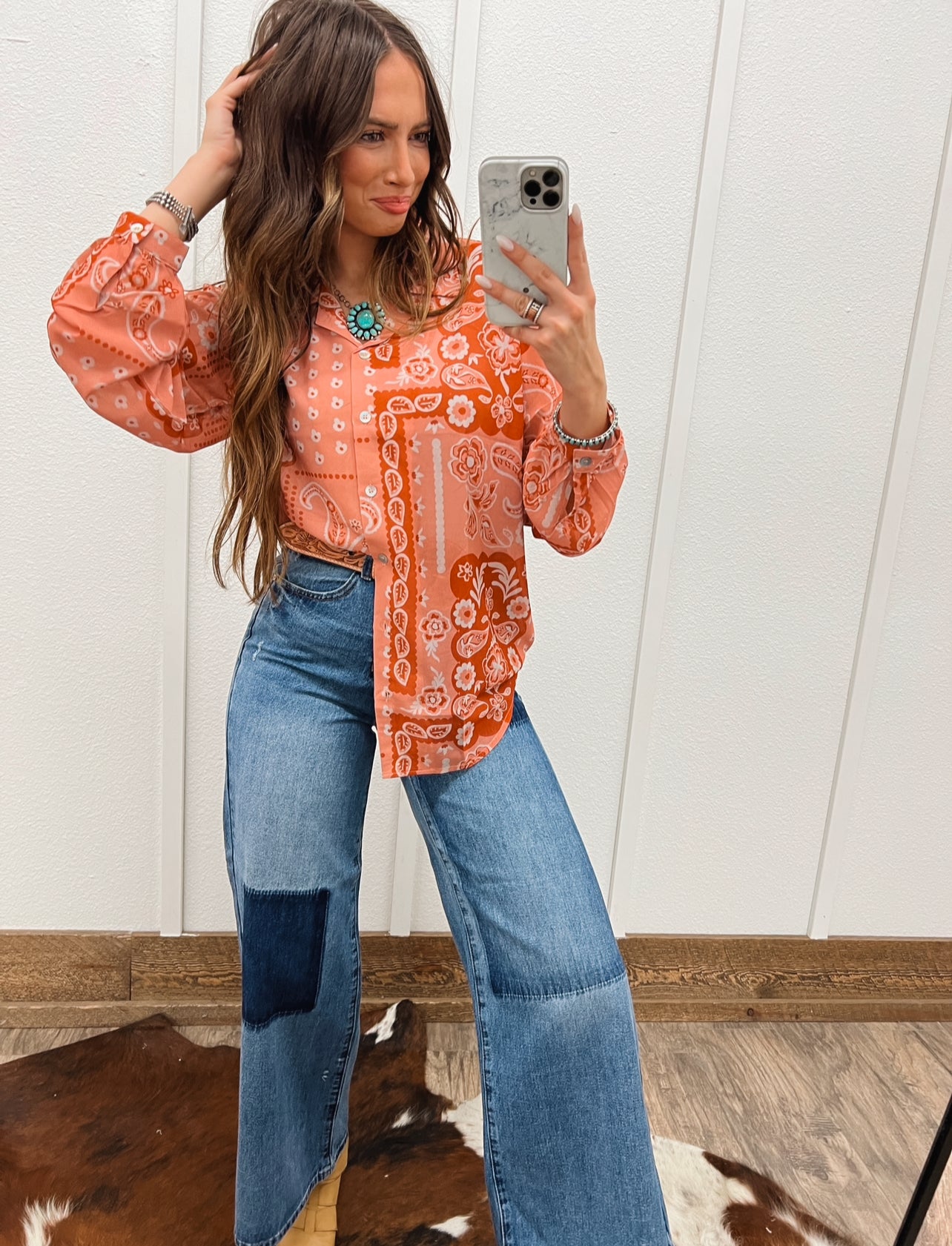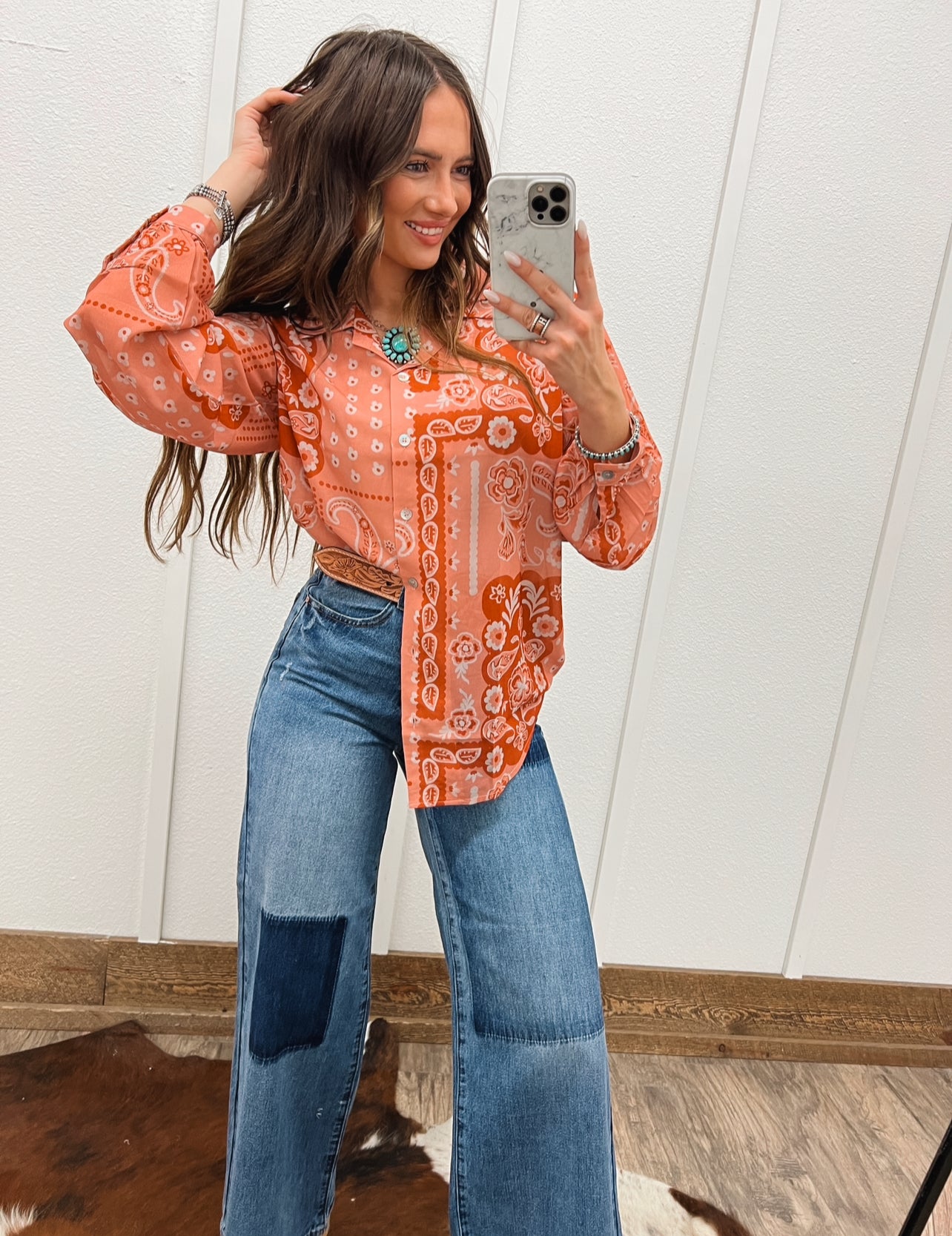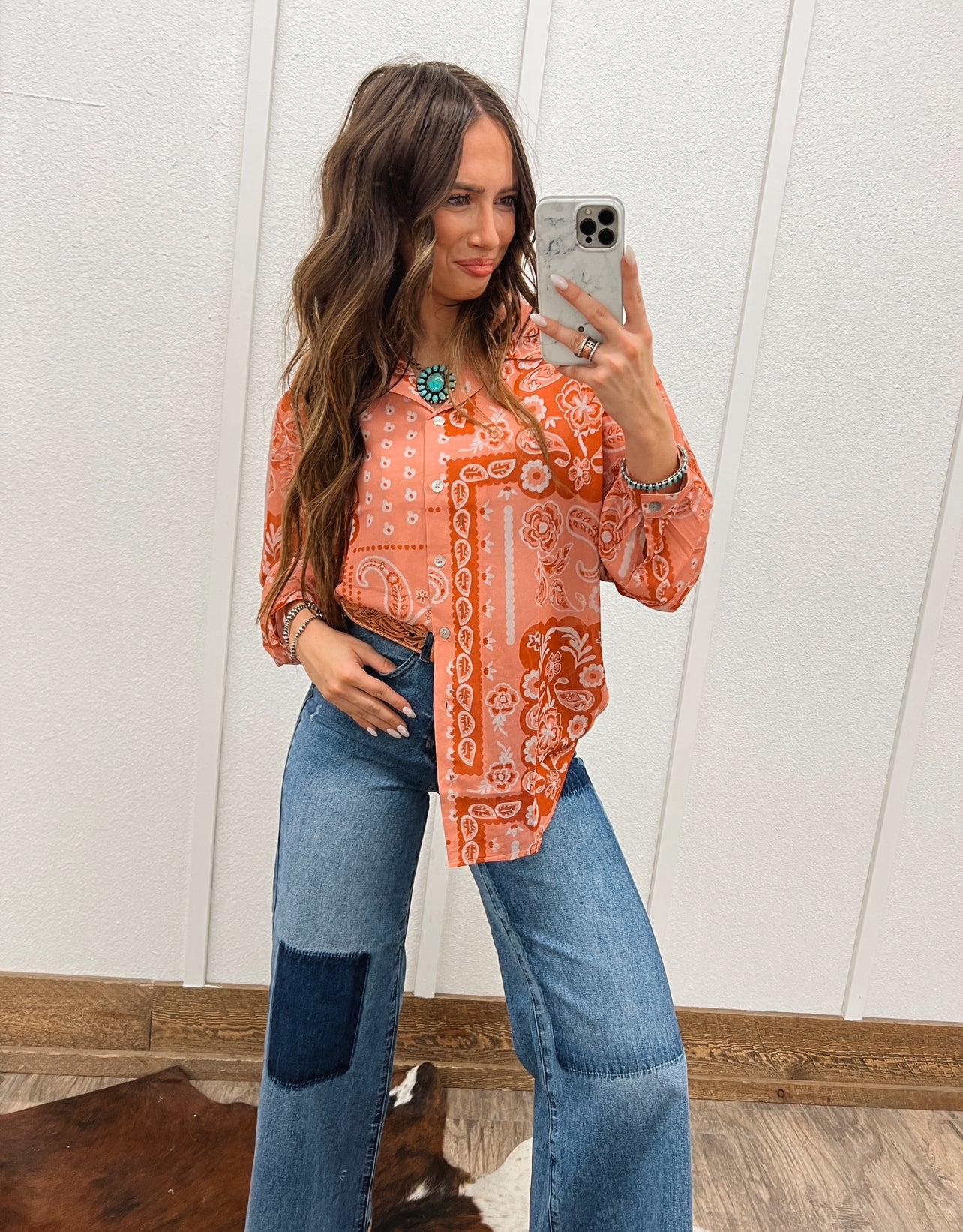 Get ready to turn heads with our Bright Button Down Blouse. This bold, western-inspired top features a button down design that will add a touch of sophistication to any outfit. The perfect mix of style and comfort, you'll feel confident and stylish wherever you go.