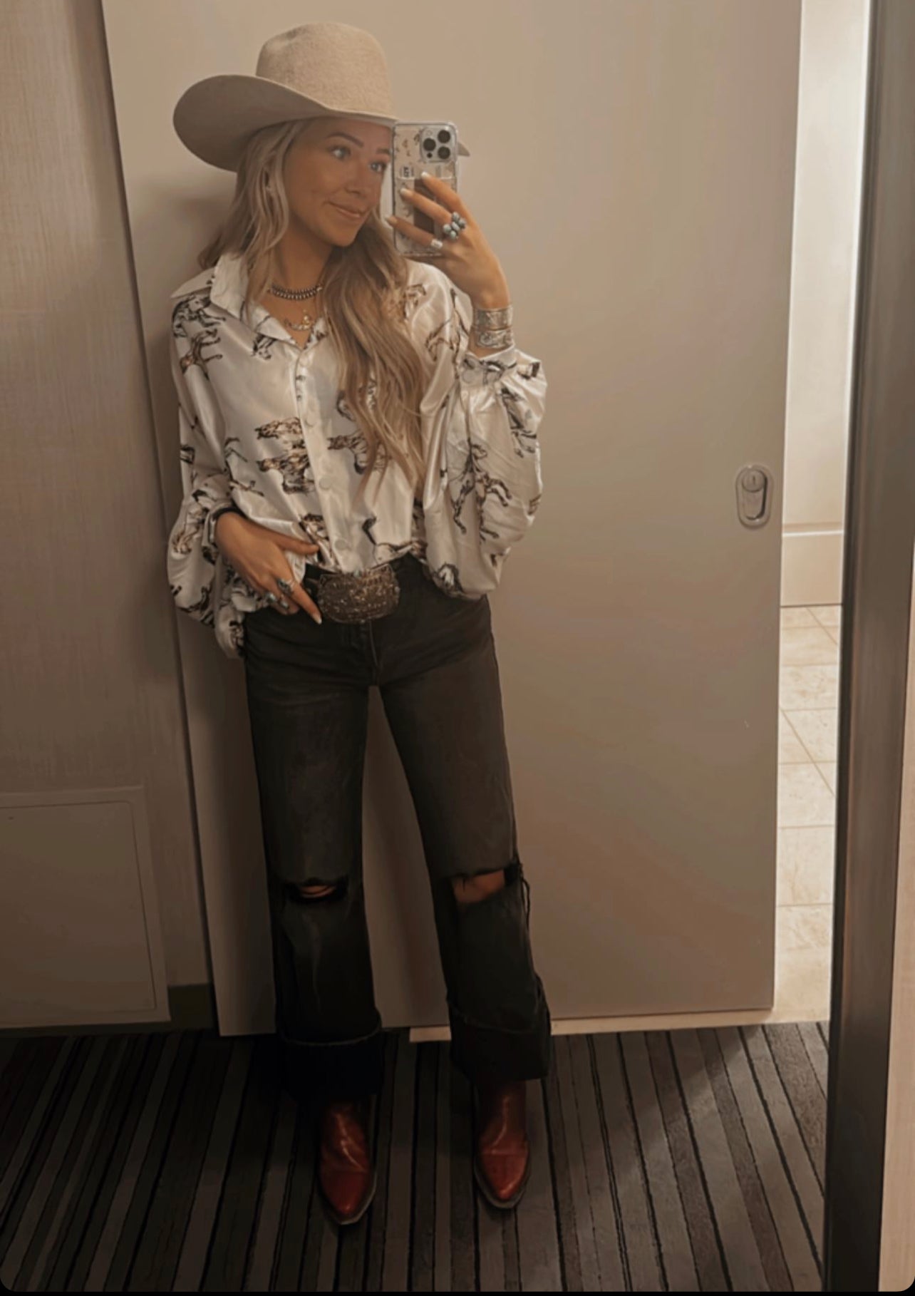 Classy Cowgirl Ways Horse Button Up (Ivory)