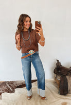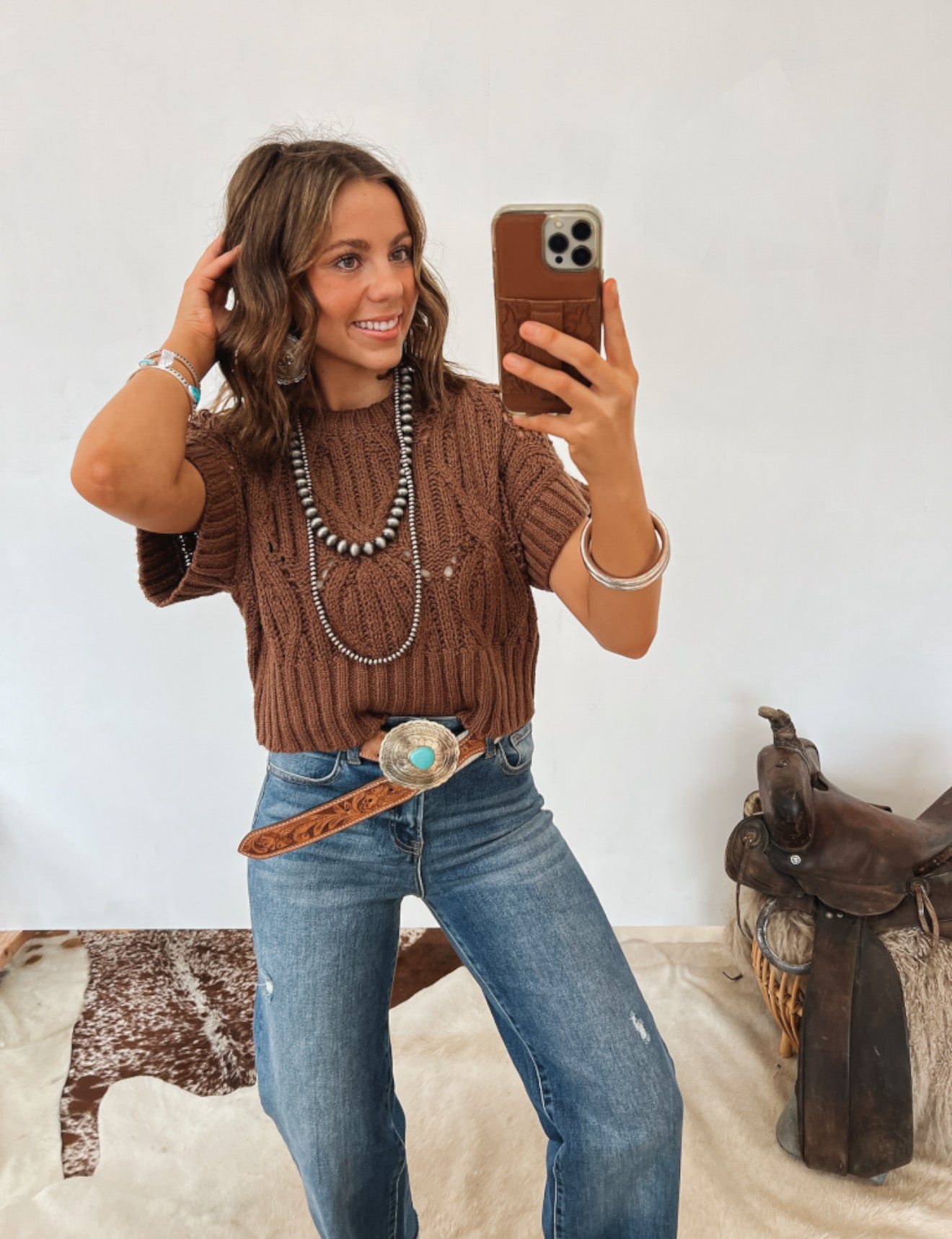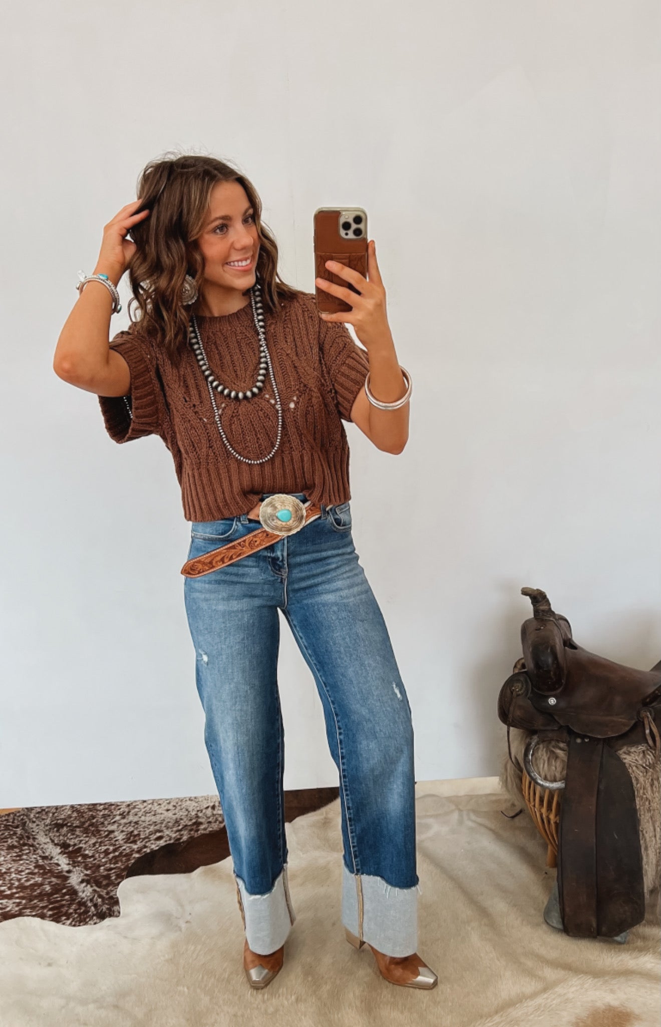 Pair with high-rise jeans and boots for a laid-back western look, or layer it over a collared shirt for a chic, ranch-meets-classic vibe.
