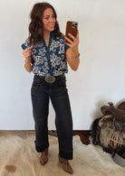 Pair with high-rise denim and sandals for an easy daytime look, or tuck into a skirt with boots for a polished western-inspired outfit.