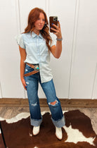 A short-sleeve cut with a relaxed, easygoing fit makes this top perfect for everyday wear. The western yoke detailing adds a touch of cowgirl charm, while the lightweight denim blend drapes effortlessly for comfort and style.