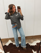 Wear it tucked into denim with a statement belt for a rodeo-ready look, or leave it open over a tee for a laid-back ranch style.