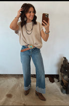 Effortlessly cool with a touch of western charm — the Saddle Stitch Sweater Vest is the layering piece your closet’s been craving. Designed in a soft, mid-weight knit with an oversized fit, this vest features contrast saddle-stitch detailing along the neckline and armholes that gives it that subtle handcrafted, ranch-inspired feel. The relaxed silhouette makes it easy to throw on over tees, blouses, or fitted long sleeves, adding instant style without any effort.