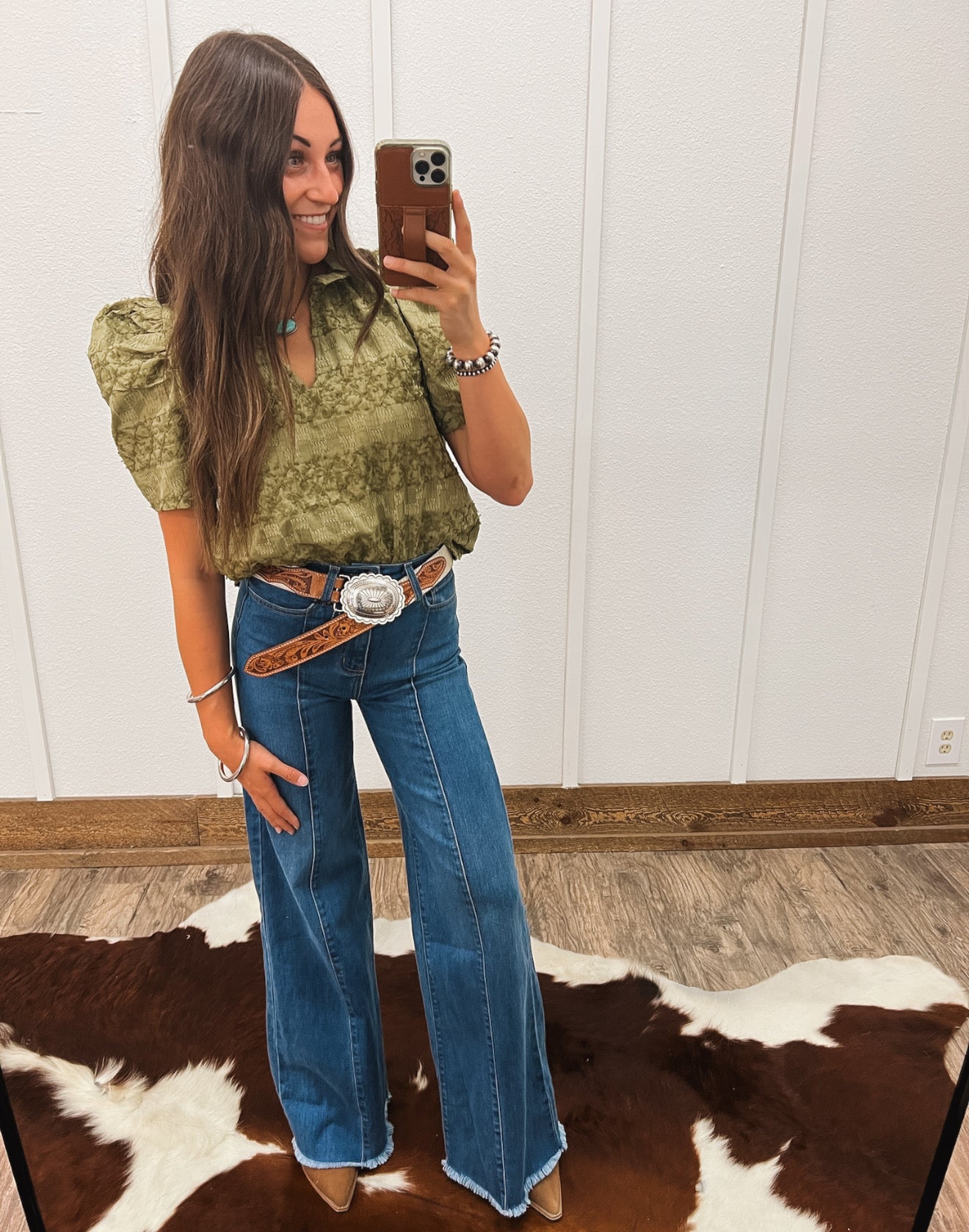 Pair with high-rise denim and a statement belt for a true cowgirl vibe, or tuck it into a skirt with boots for a dressed-up western look.