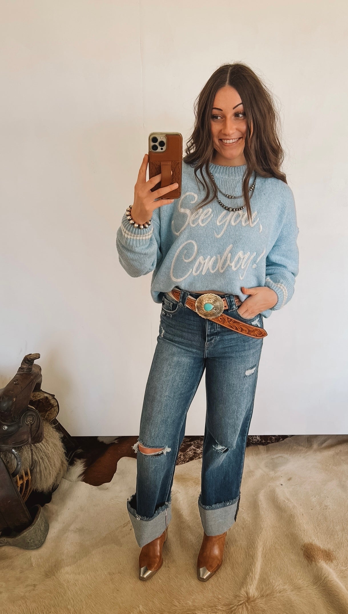 See You Cowboy Sweater (Daisy Blue)