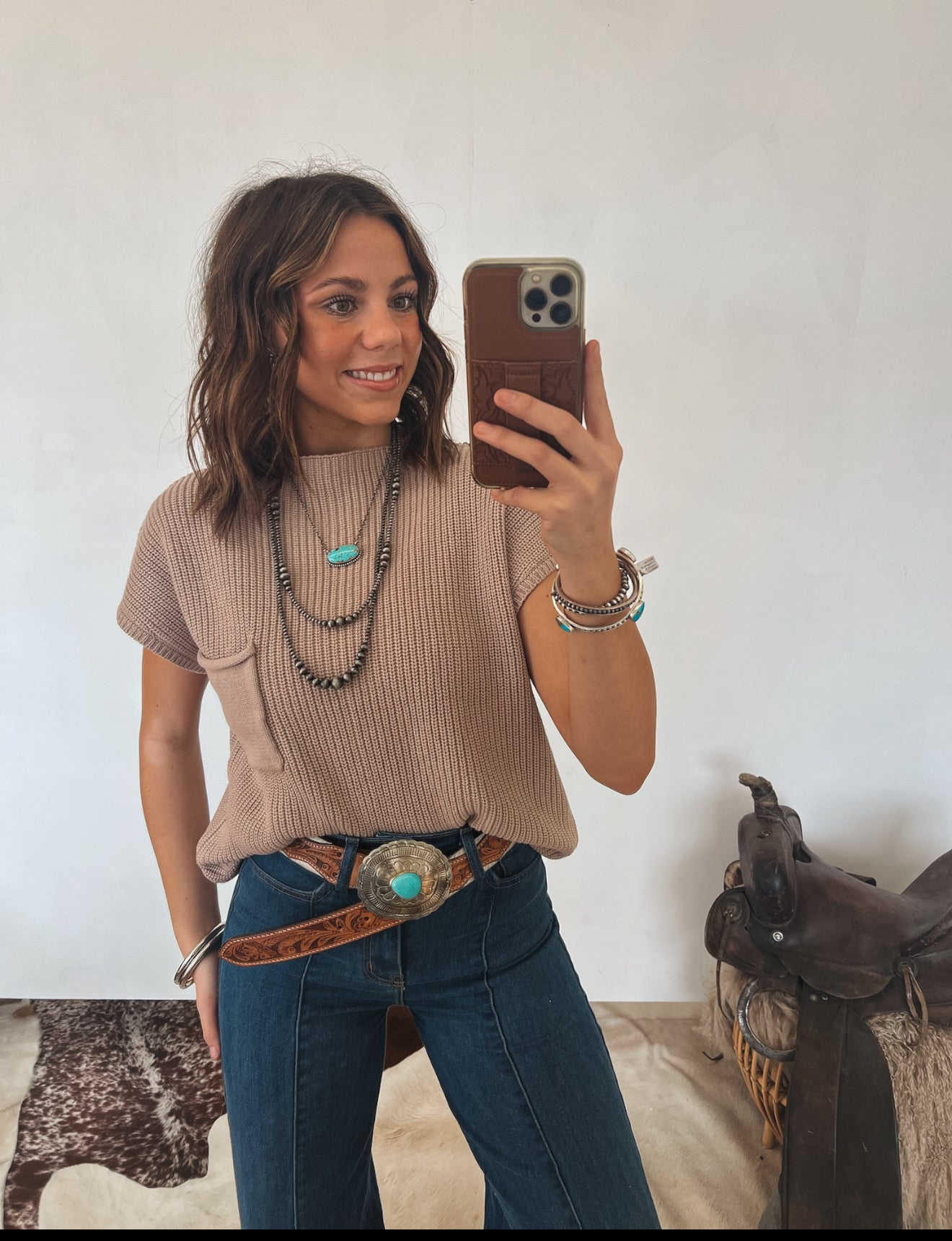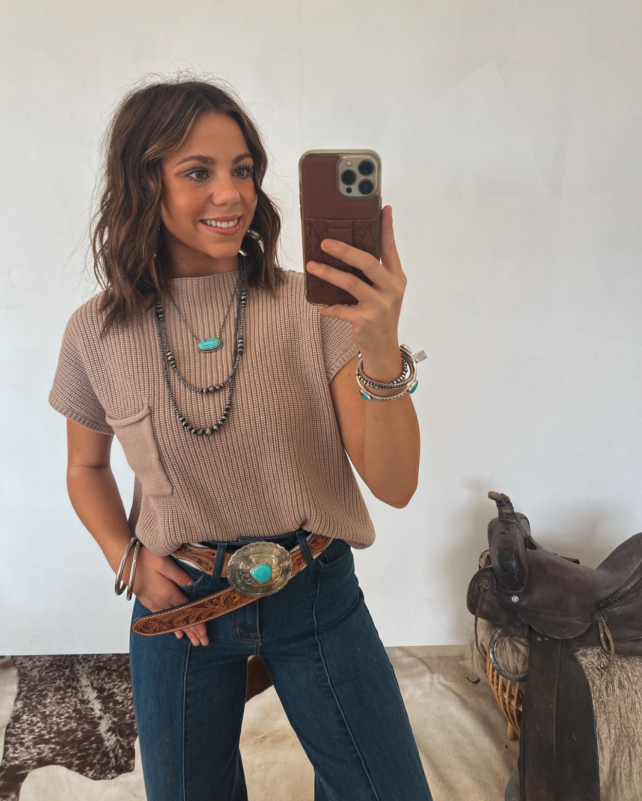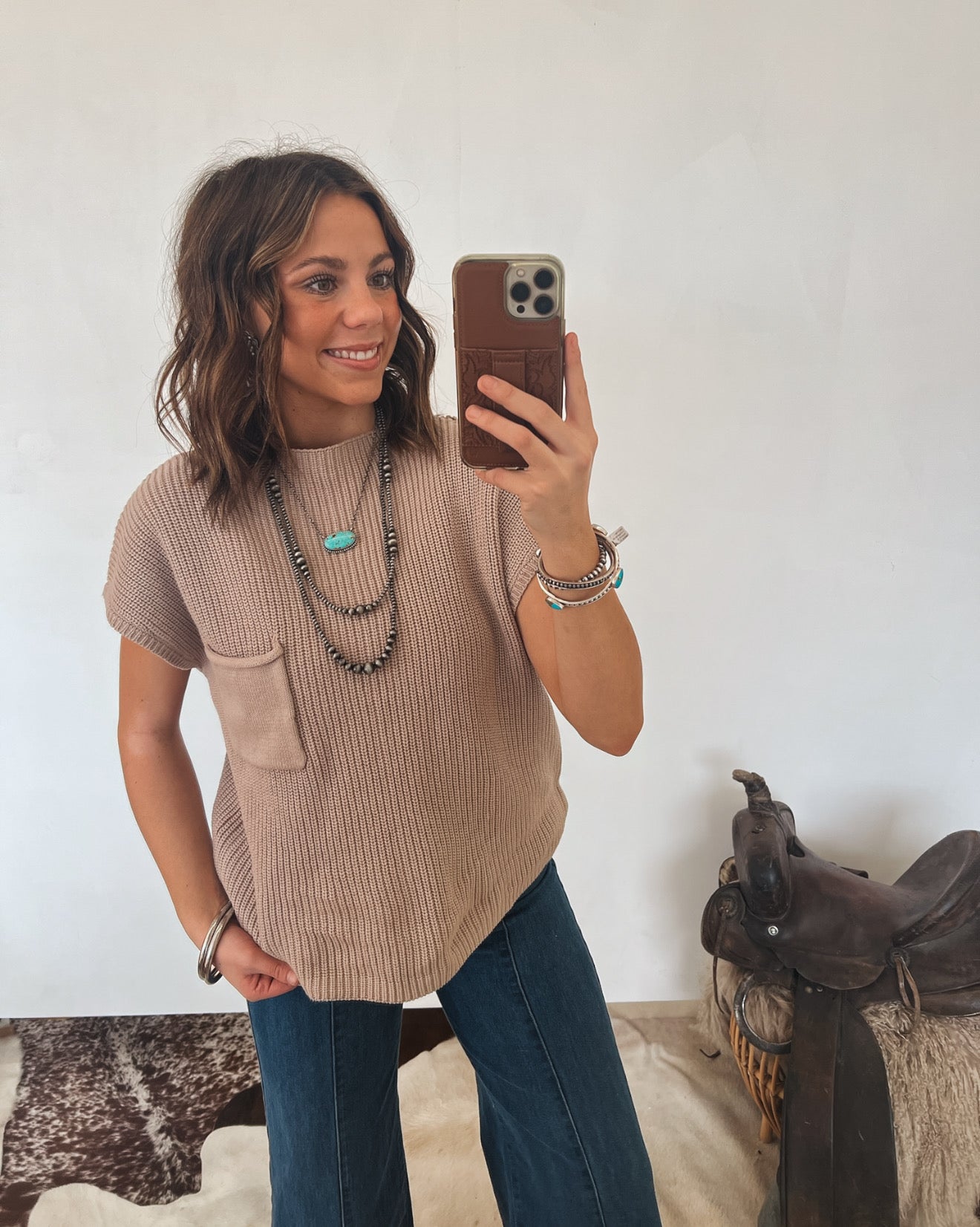 This cozy cream western sweater vest is perfect for adding a touch of Western flair to your outfit. Its classic lasso motif is stylish yet timeless. Add some cowgirl flair to your look with this piece.