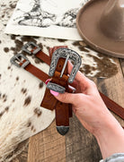 A best seller for our vintage inspired belts, this western style belt is made with genuine leather and embellished throughout with a beautiful floral print design. It is styled with antique silver elements in the buckle, loop, and end pieces of the belt, all of which are also enhanced with intricate floral engravings. Available in black and tan, this vintage western belt with antique silver plating will definitely draw attention to any outfit and accentuate your western cowgirl look. The attentive craftsmanship of this belt will definitely be an eye catcher!