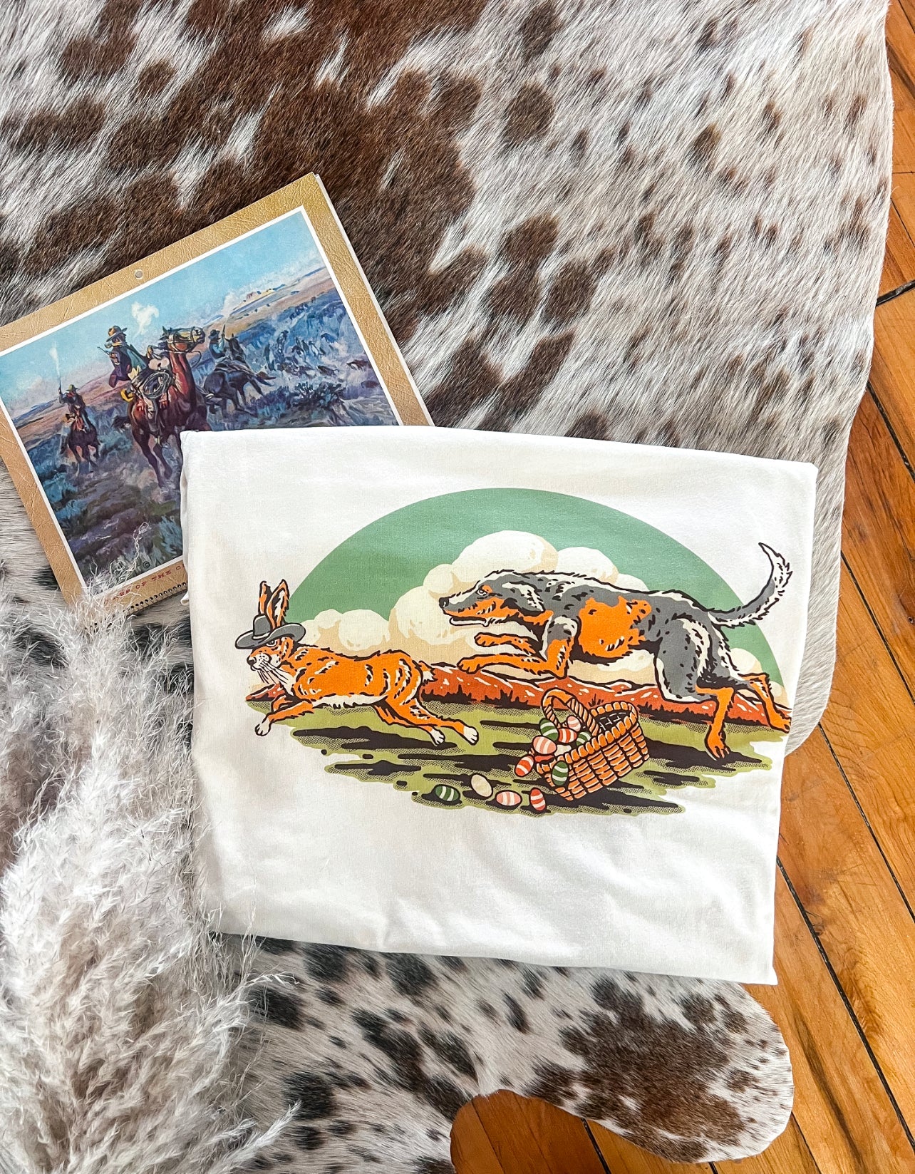 Bunny Chase Easter Tee or Sweatshirt (cream) (Adult)