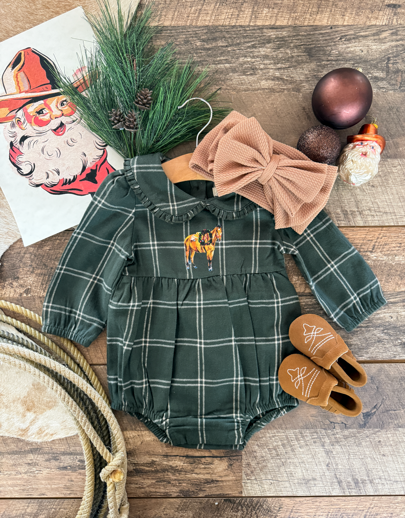 A darling Western-inspired romper for your little cowhand. Made from 100% organic cotton flannel, this piece brings soft comfort and timeless charm to every season.