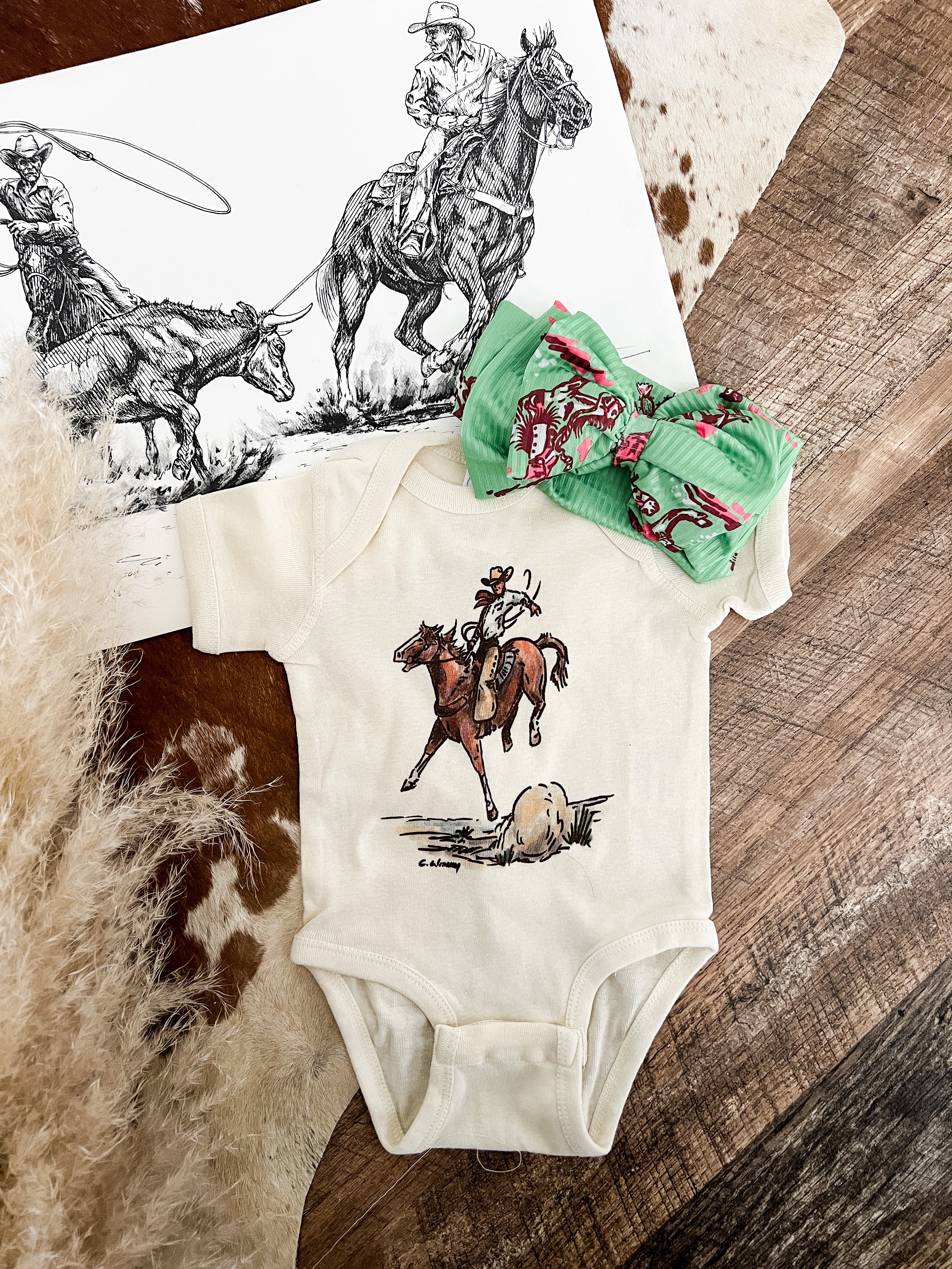Cody Horse S/S Onesie (Infant/Toddler/Youth) (Cream)