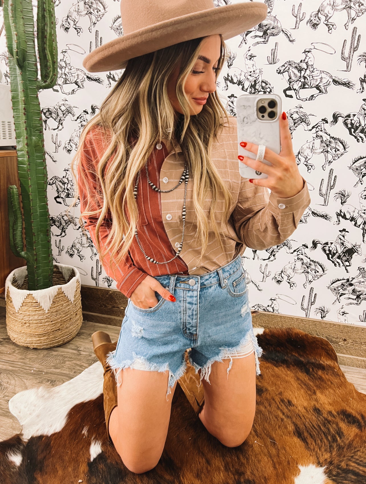 Cowboy Man High Rise Denim Shorts(S8745A)Medium Wash)