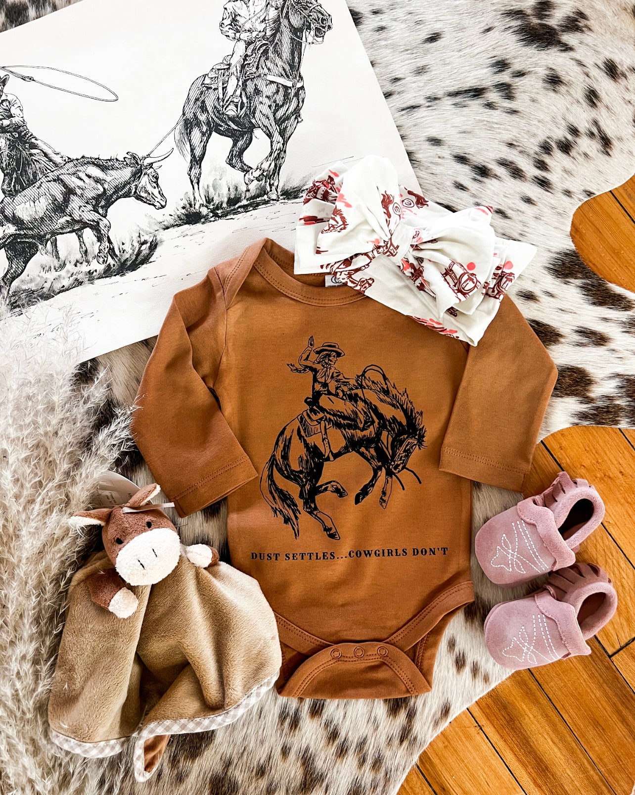 Cowgirl Dust Longsleeve Onesie(little kid)(ginger)