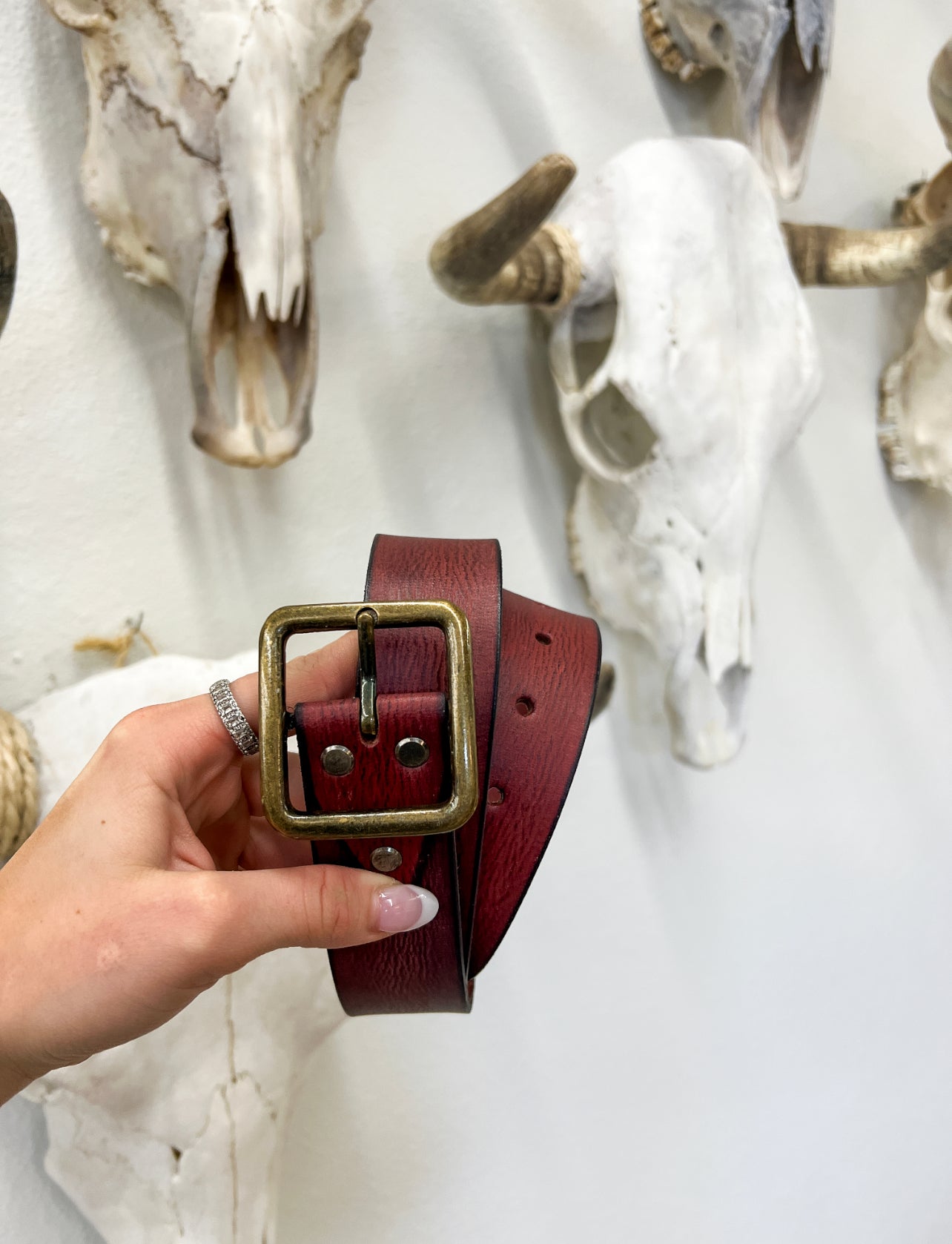 Deep Red Moon Leather Belt
