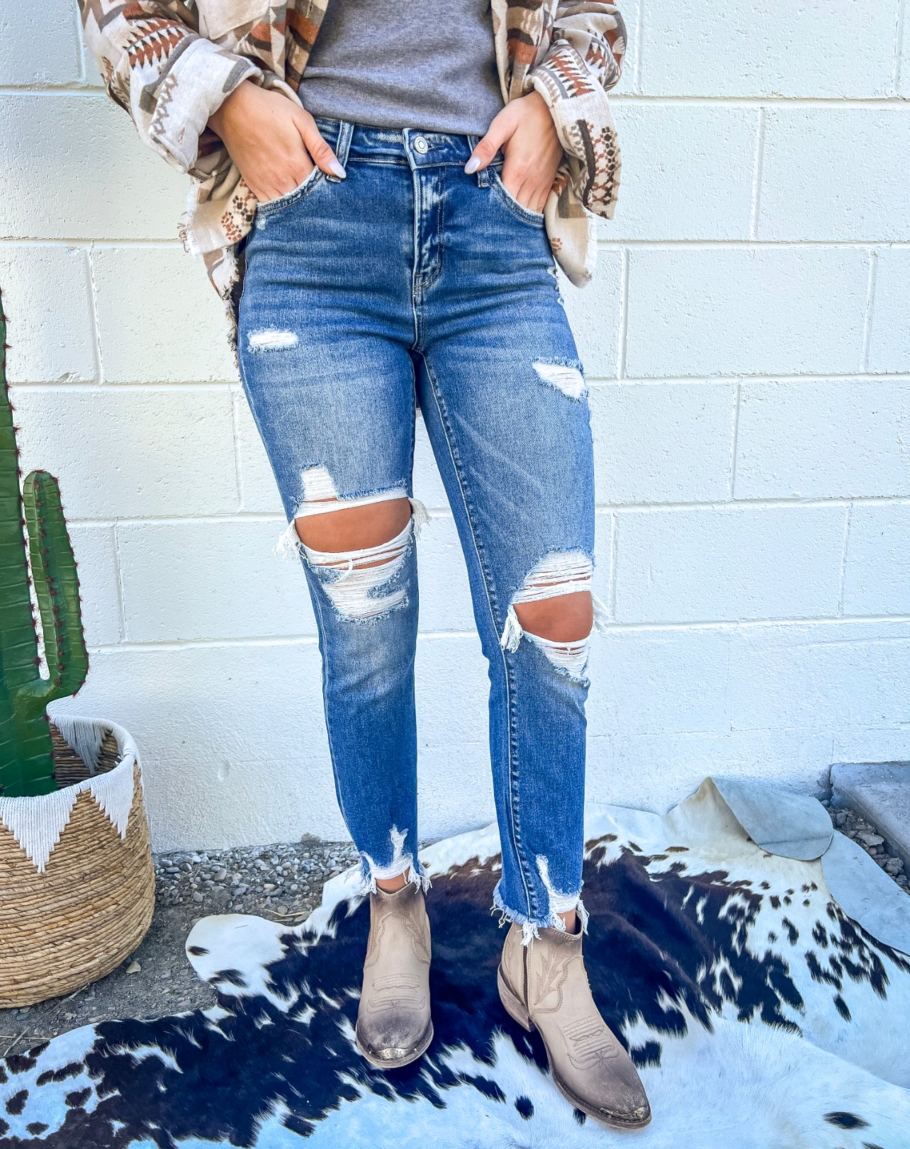 DISTRESSED MID RISE ANKLE STRAIGHT