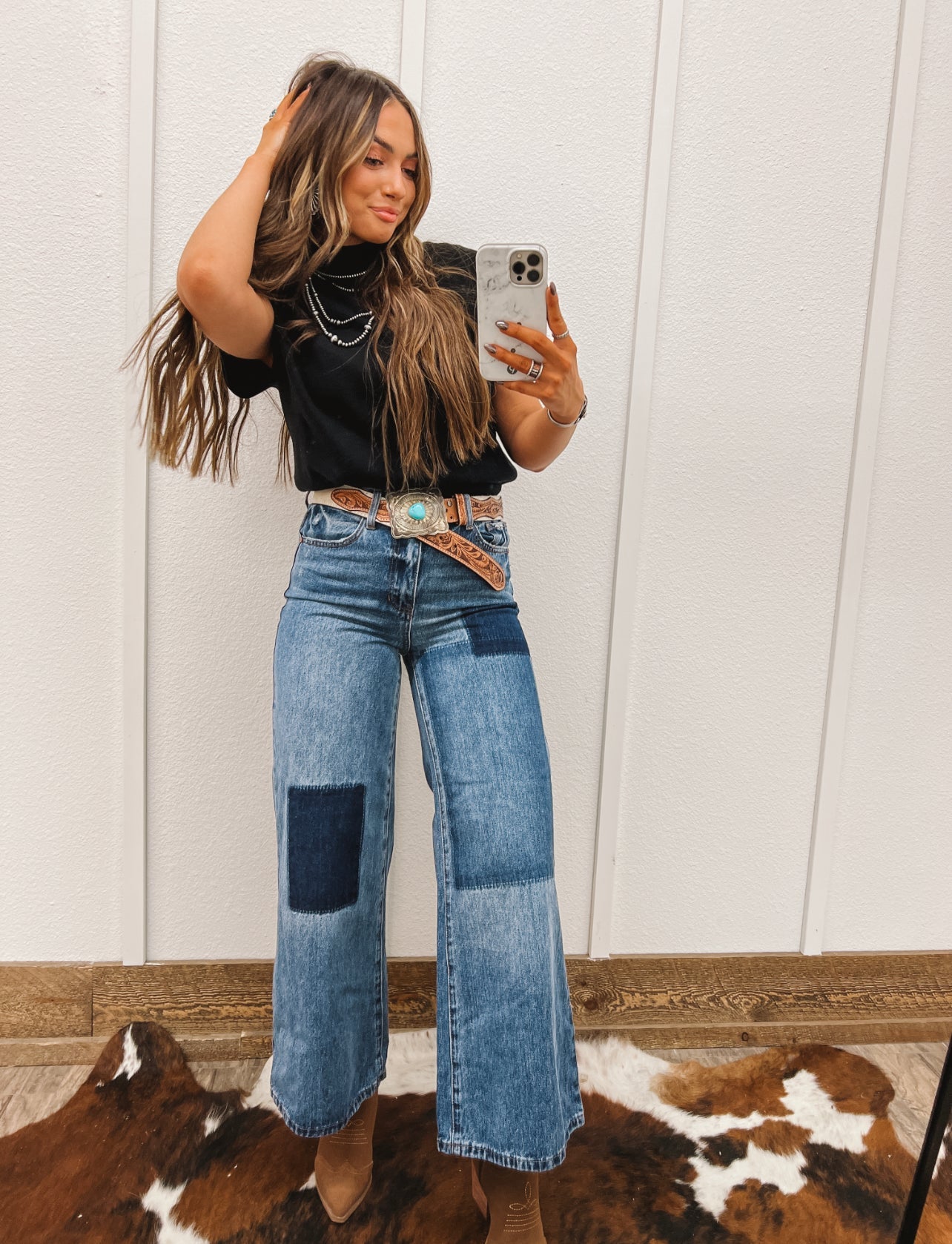 RELAXED WIDE LEG PATCHWORK JEANS