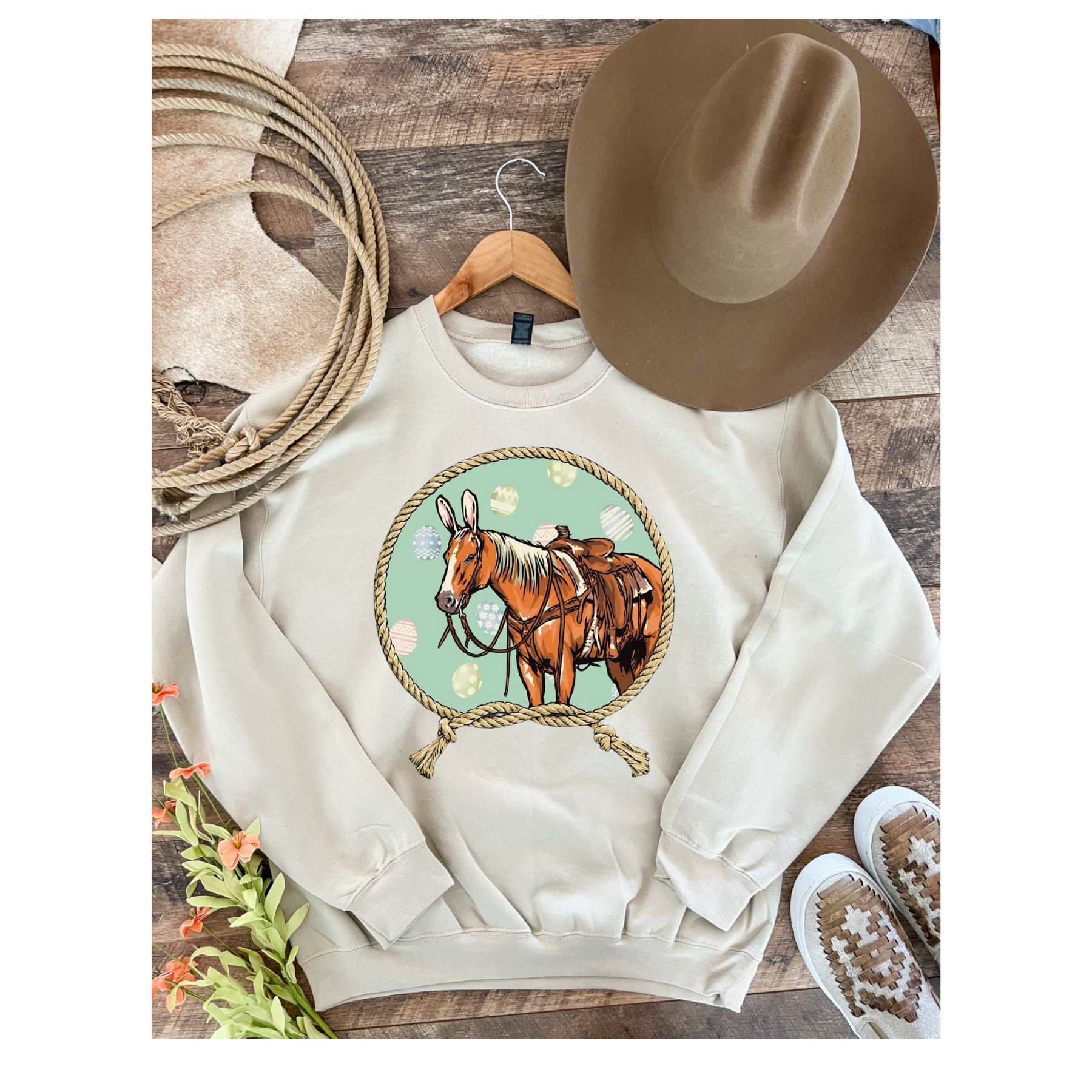 Easter Horse Design Tee Or Sweatshirt(Cream)Adult