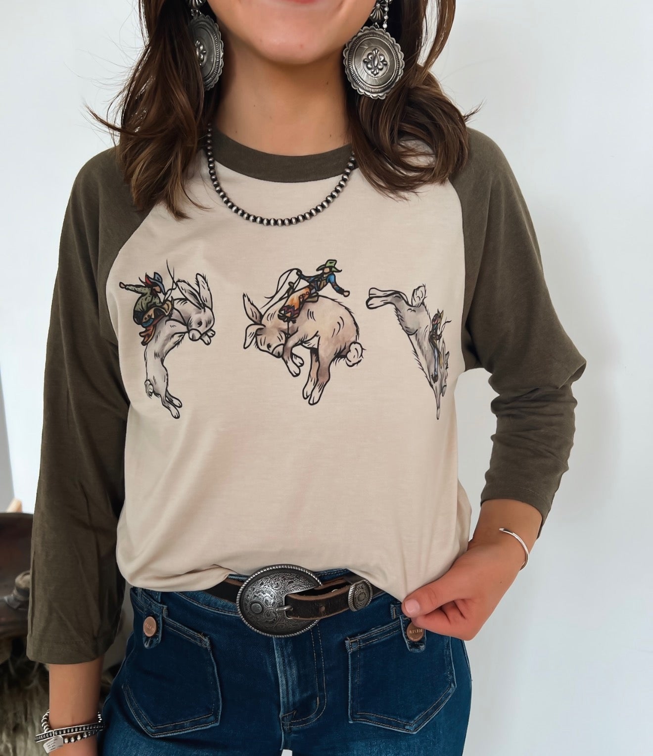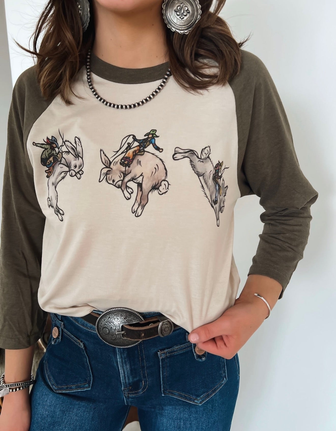 Bunny Hoppin' Western Graphic | Raglan Tee(Brown/Bone)
