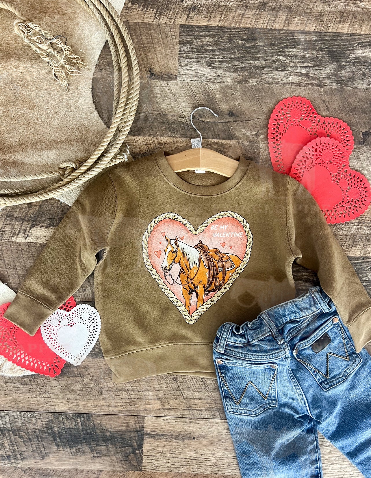 Heart Horse Valentines Sweatshirt(Infant/Toddler)(Cognac/Coyote)