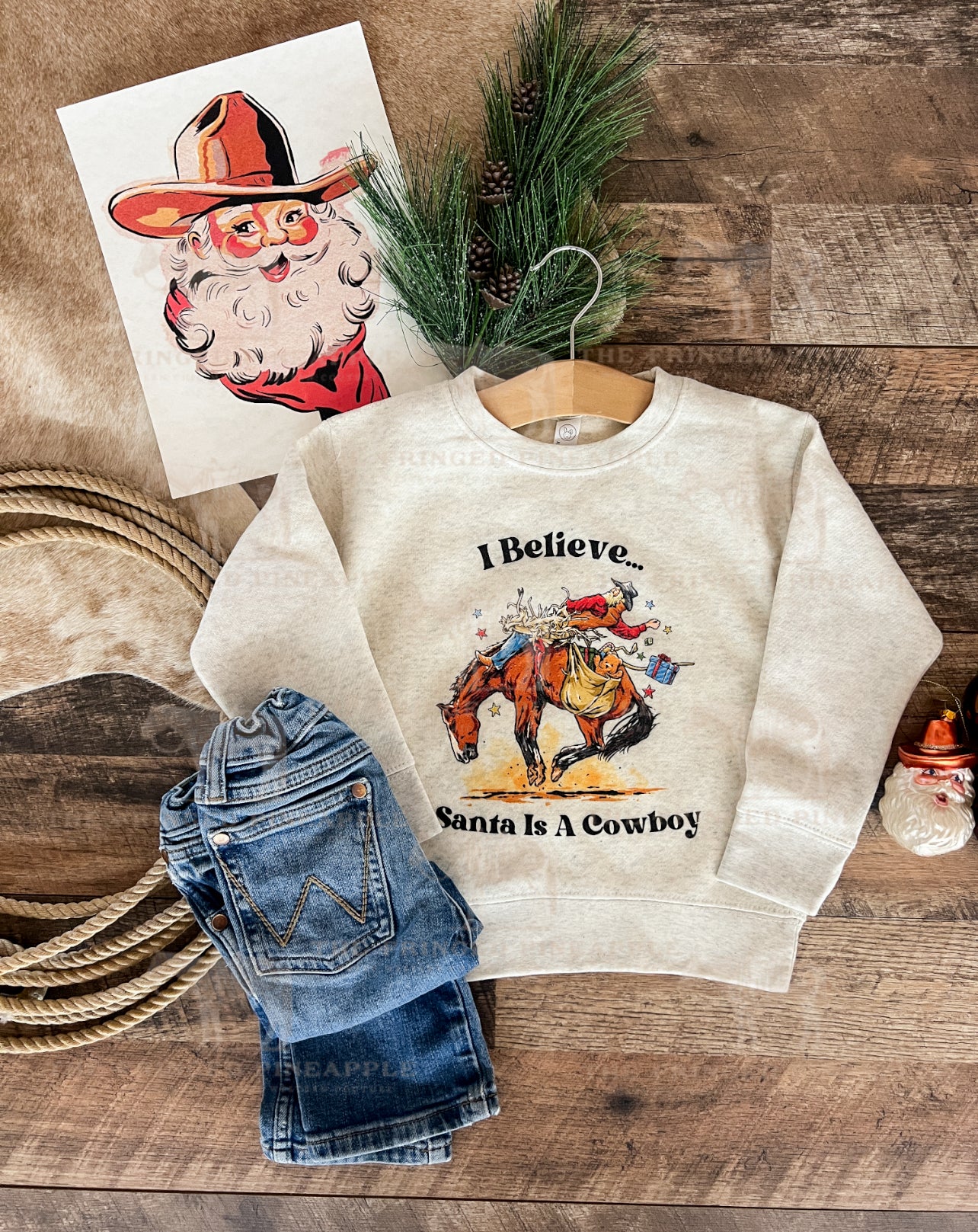 I Believe Santa Is a Cowboy Sweatshirt or Tee (Cream / Heathered Cream)