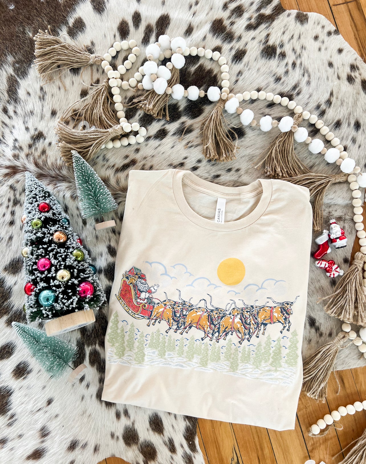 Santa Sleigh Christmas Design (Youth Onesie/Tee)(cream)