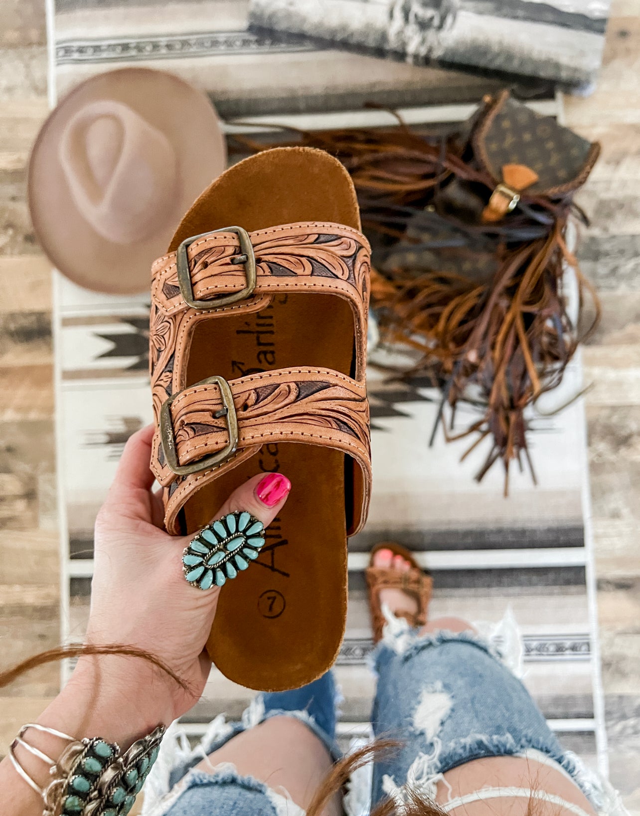 Stockyards Tooled Leather Sandal (double band)
