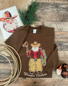 Round up the holiday spirit with our Wranglin’ Christmas design — where cowboy charm meets Christmas cheer! Printed on light brown tones for that cozy, Western holiday look you’ll want to wear all season long.