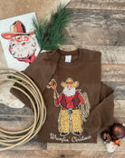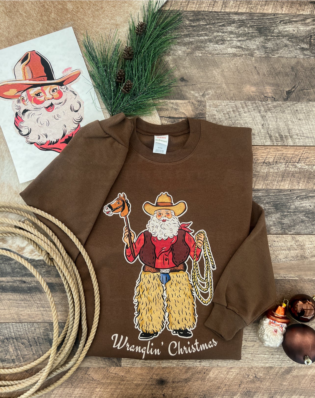 Wranglin' Christmas Santa Tee or Sweatshirt (chocolate brown)